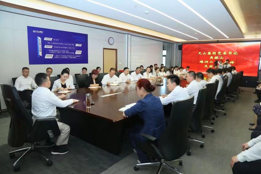 7月31日,集团党委在天山集团党员培训电教室召开了7月份“学习二十大精神党课暨庆祝建党102周年系列活动总结表彰会议”,集团党委委员、各支部书记及委员、各支部入党积极分子和入党愿望强烈的部分员工参加了本次会议。党委书记吴振山亲自给大家上了一堂生动的党课。